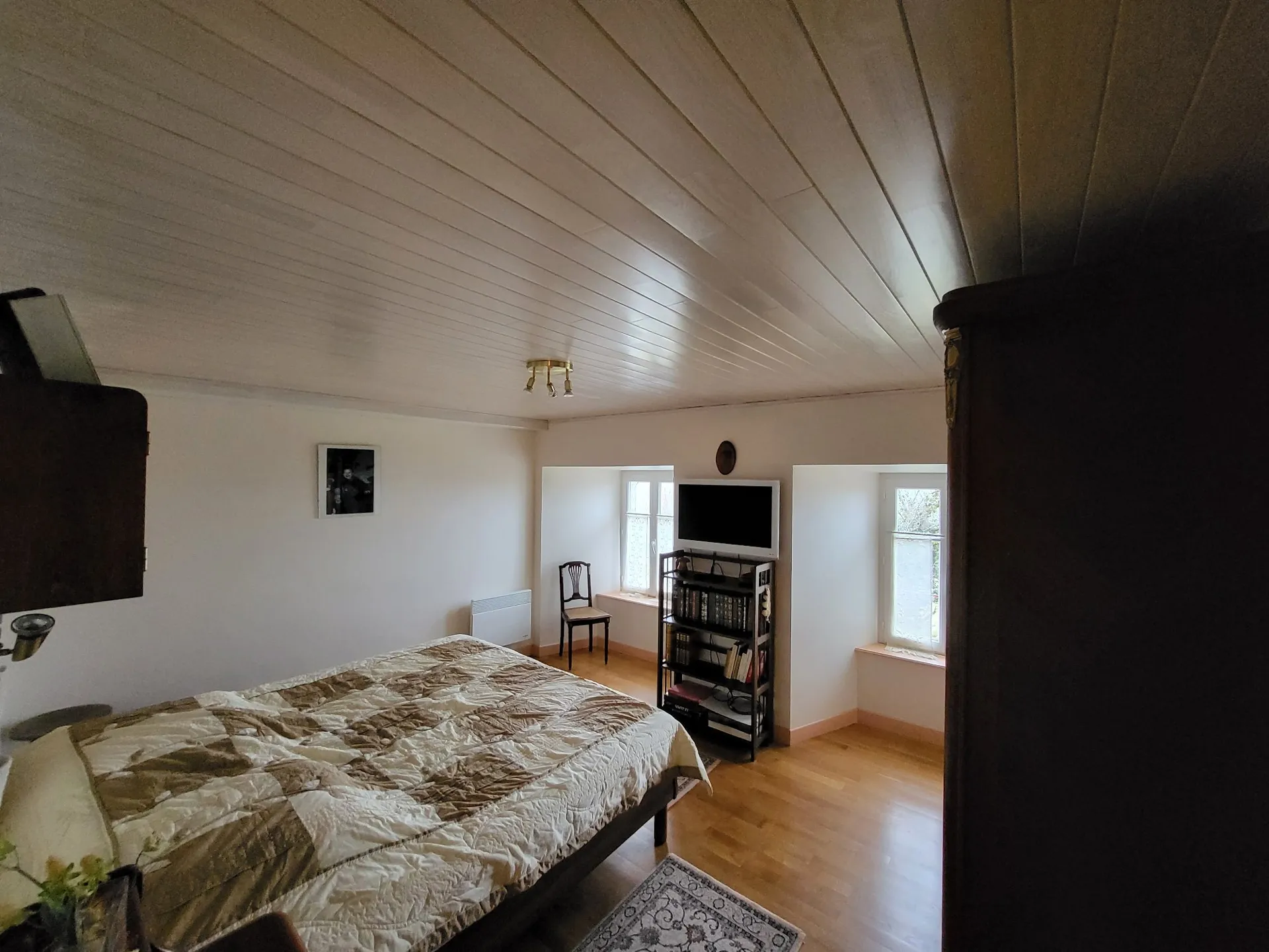 Au deuxième étage : 1 très grande chambre avec 4 couchages.