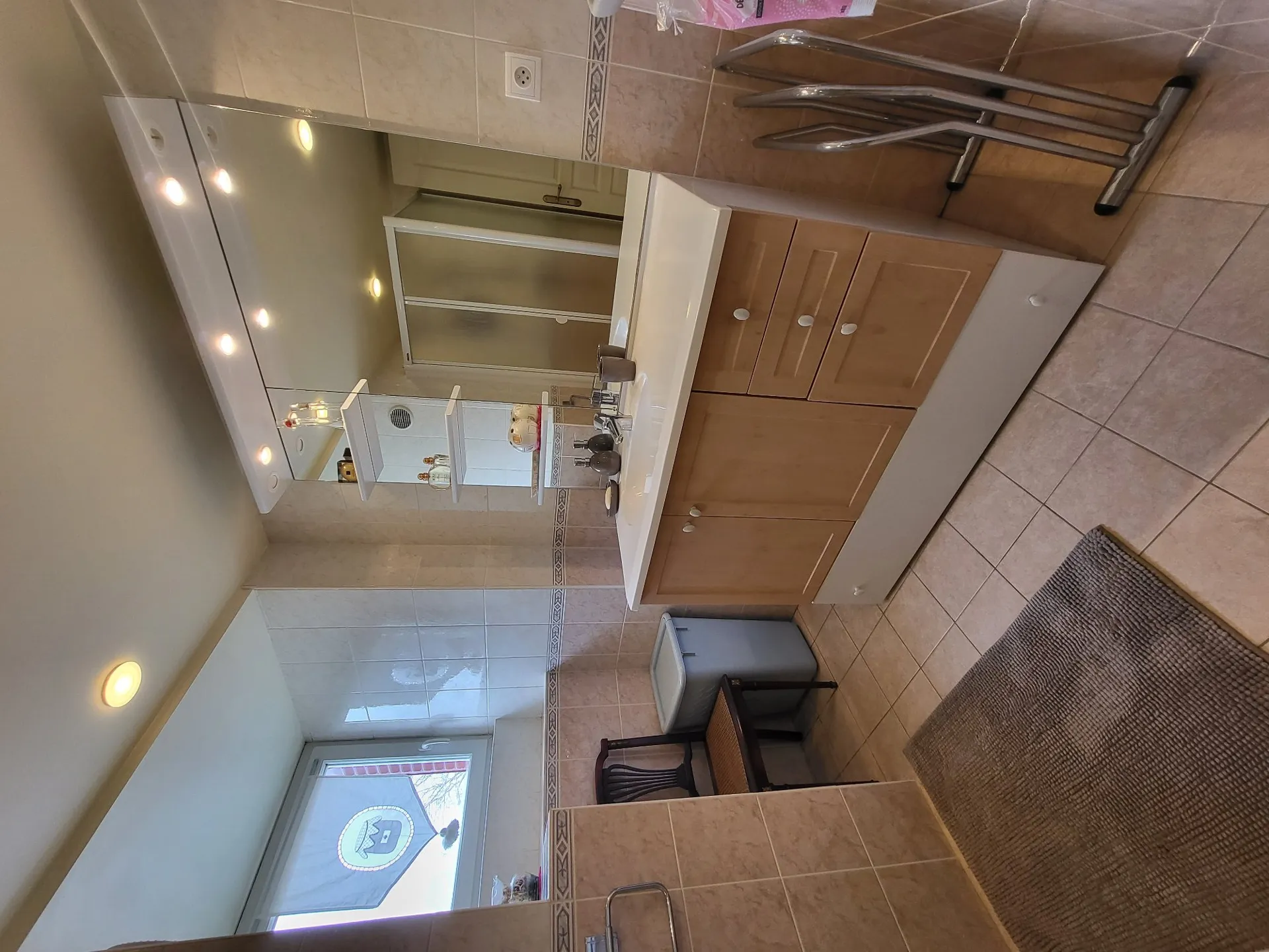 Au rez-de-chaussée : salle à manger, cuisine équipée (lave-vaisselle, micro ondes, four pyrolyse, cafetière, bouilloire etc…), WC, buanderie.